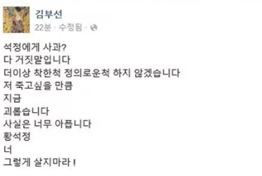 그후 김부선은 경솔했다며 사과의 SNS를 올렸다가, 사과를 번복하는 내용의 SNS를 올렸다.